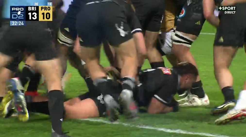 Cela semble avoir réveillé tous les brivistes ! Les avants veulent aussi leur essai et cela arrive dans leur plus pur style : pénaltouche à 5 mètres, lancer de Lucas Da Silva, prise de balle de Henco Venter, maul et essai du talonneur (20-10, 34').