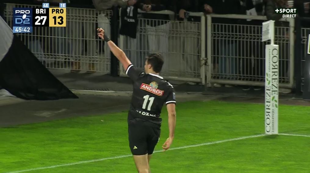 Sur sa lancée, Brive veut enfoncer le clou dès le début de la seconde période, comme c'était le cas en première période. Mais la première tentative est manquée avec des transmissions approximatives (42'). Provence continue de tenir le ballon mais tombe sur une solide défense briviste. Belle pression de Pimienta et Venter intercepte le ballon. Après un passage par le sol, l'équipe joue ce ballon de récupération. Trouvé sur son aile, Lefranc décide de s'occuper de tout tout seul : jeu au pied rasant, accélération et essai (34-13, 47'). Premier triplé en pro pour l'ailier !