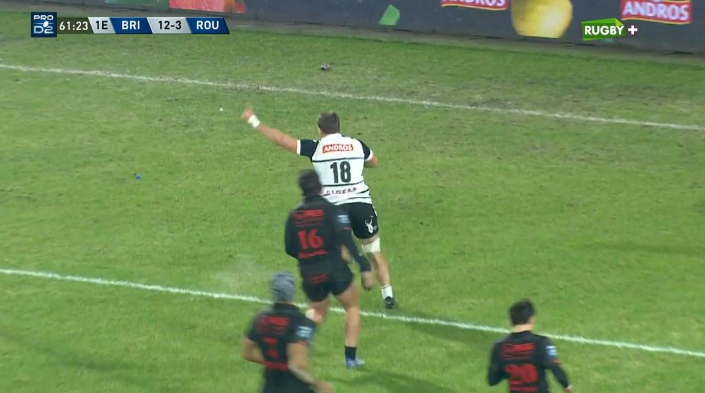 Les entrants commencent à peser sur cette fin de match. La puissance et l'explosivité des Fraissenon, Usarraga et Moriarty, sans oublier la vista de Carbonneau, tout ceci commence à peser sur le moral de rouennais qui luttent avec leurs armes mais qui commencent à trouver le temps long. Rouen accumule les fautes dans ses 22 mètres et à force, la sanction tombe : carton jaune pour JT Jackson (69'). Brive continue d'insister en force. Francisco Coria Marchetti est bloqué sur la ligne, Léo Carbonneau relève le ballon et lance Ross Moriarty. Le gallois envoie valser Pourteau mais le rouennais se retrouve sous le briviste au moment d'aplatir. Comment est ce possible de ne pas marquer ? (70'). Si l'alignement briviste connait quelques ratés, Rouen se saborde totalement avec un Lucas Malbert totalement désynchronisé. Brive insiste encore et toujours avec ses avants. Derrière une mêlée, Moriarty part, casse plusieurs plaquages mais est repris à quelques mètres de l'en-but. Cela enchaine et Carbonneau lance parfaitement Nathan Fraissenon dans l'intervalle pour l'essai du bonus (21-3, 75'). Le pilier briviste laisse éclater sa rage après cet essai, un essai presque libérateur.