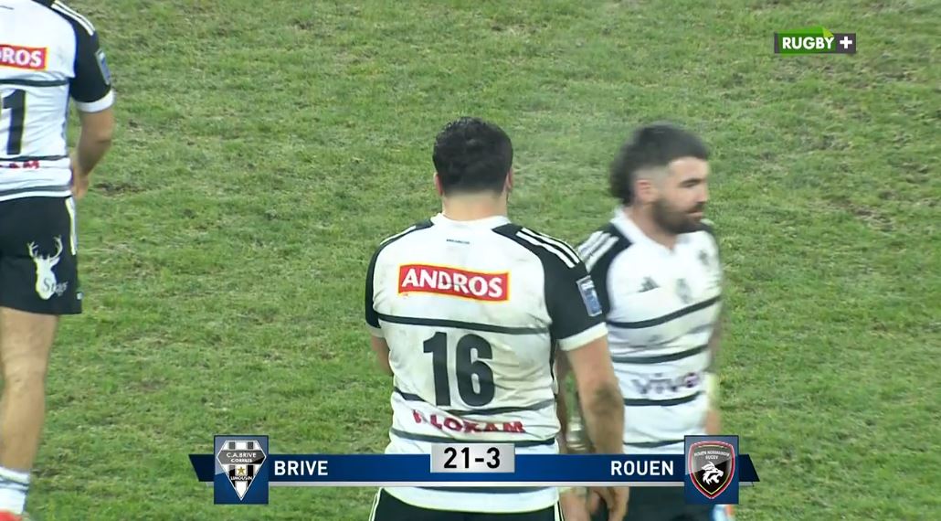 Après un premier quart d'heure sans grandes envolées, en voici une et on espère que cela va débloquer la rencontre. Mais voilà, Rouen s'accroche et va capitaliser tout de suite. Brive se met à la faute à deux reprises et cela offre une pénalité dans les cordes de Franck Pourteau. Le buteur rouennais ne manque pas la cible (7-3, 19'). Brive repart à l'attaque mais il est difficile de faire craquer cette défense et notamment dans l'axe. Brive ne parvient pas à faire des différences, tout en laissant tomber de plus en plus de ballons, à l'image de cet avantage en cours non exploité à la suite d'un en-avant de Jackson Garden-Bachop. Sur la pénalité, face aux perches, le buteur briviste trouve le poteau (ce problème de buteur régulier va se payer tôt ou tard dans la saison) mais Arthur Bonneval prend le rebond offensif. Brive insiste à 5 mètres en cherchant à y aller en force. Rouen sort les barbelés et va obliger le CAB à jouer au large. Garden-Bachop porte le ballon et sert Bonneval ... qui laisse échapper le ballon (25'). Les brivistes sont dans un temps fort et Rouen n'est pas loin de craquer. Les avants insistent à nouveau sur la ligne rouennaise et la défense se met à la faute. On repart sur du jeu d'avants mais personne ne gagne son duel. Cela reste très stéréotypé et au final, c'est Rouen qui gagne le duel avec un grattage de Jimi Maximin (30'). Sur une formation de maul, Soso Bekoshvili se met à la faute. Garden-Bachop connait son deuxième échec de la soirée (34'). Brive a le ballon mais est trop dans l'affrontement, tombant dans le piège tendu par Rouen qui reste solide et solidaire en défense. Les attaquants brivistes commettent également de nombreux en-avants. La partie a du mal à trouver du rythme avec ces nombreux arrêts de jeu. La mi-temps est sifflée et elle va faire du bien à tout le monde. Brive mène mais propose un jeu brouillon, à une dimension, sans changements de rythme. Rouen s'accroche et défend bien jusqu'à présent.
