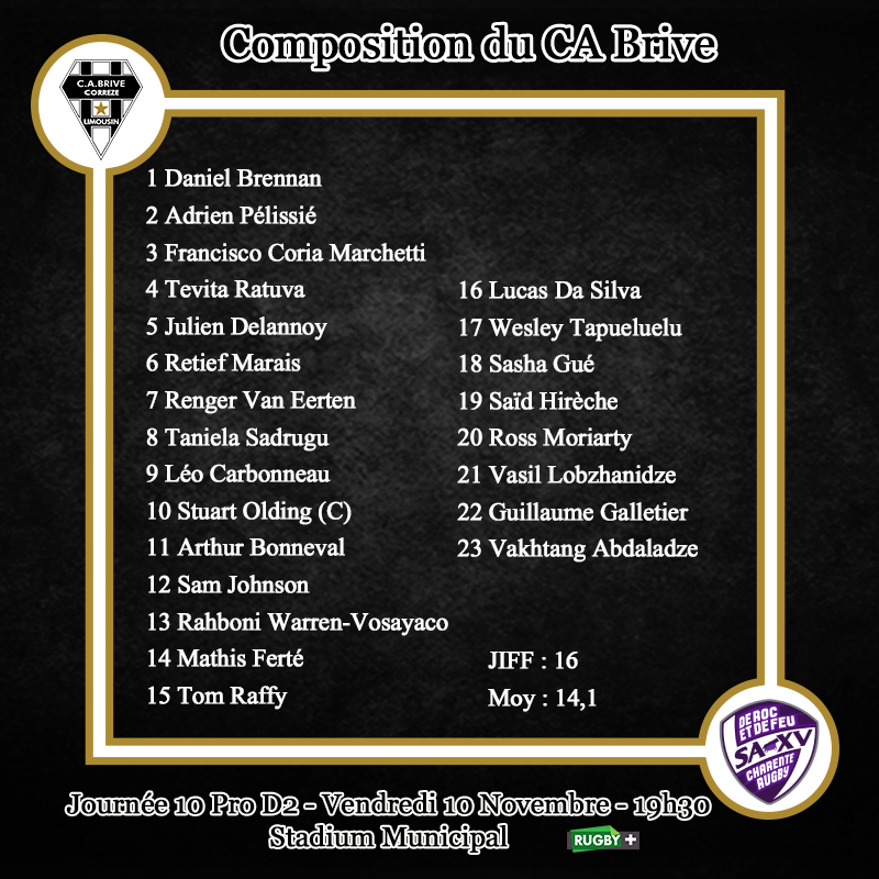 Voici le XV de départ du CA Brive pour la réception de Soyaux-Angoulême :