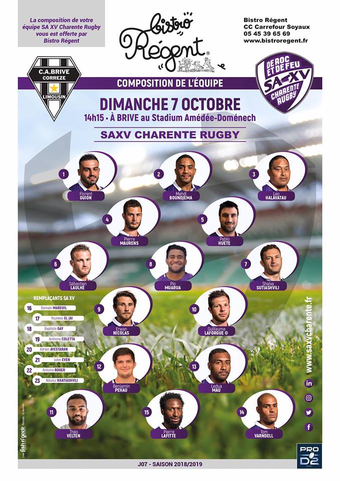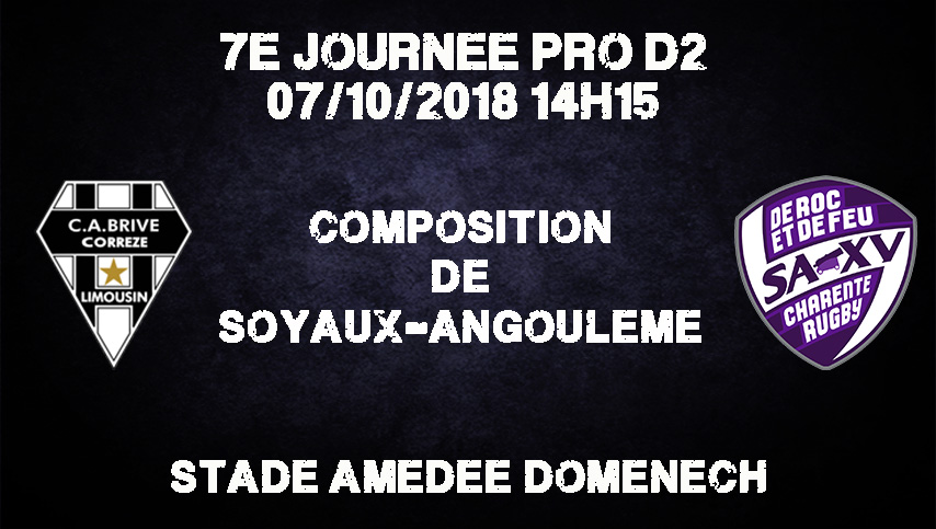 Voici le XV de départ de Soyaux-Angoulême pour le déplacement à Brive :