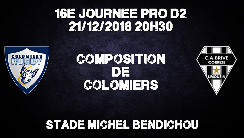 Pour cette réception, Colomiers sera privé de Coll (pommette), Granouillet (commotion), Cazenave (cheville), Browning (cervicales), Inigo (genou), Voretamaya (genou), Dubois (cervicales), Lagain (commotion) et Memain (suspendu).