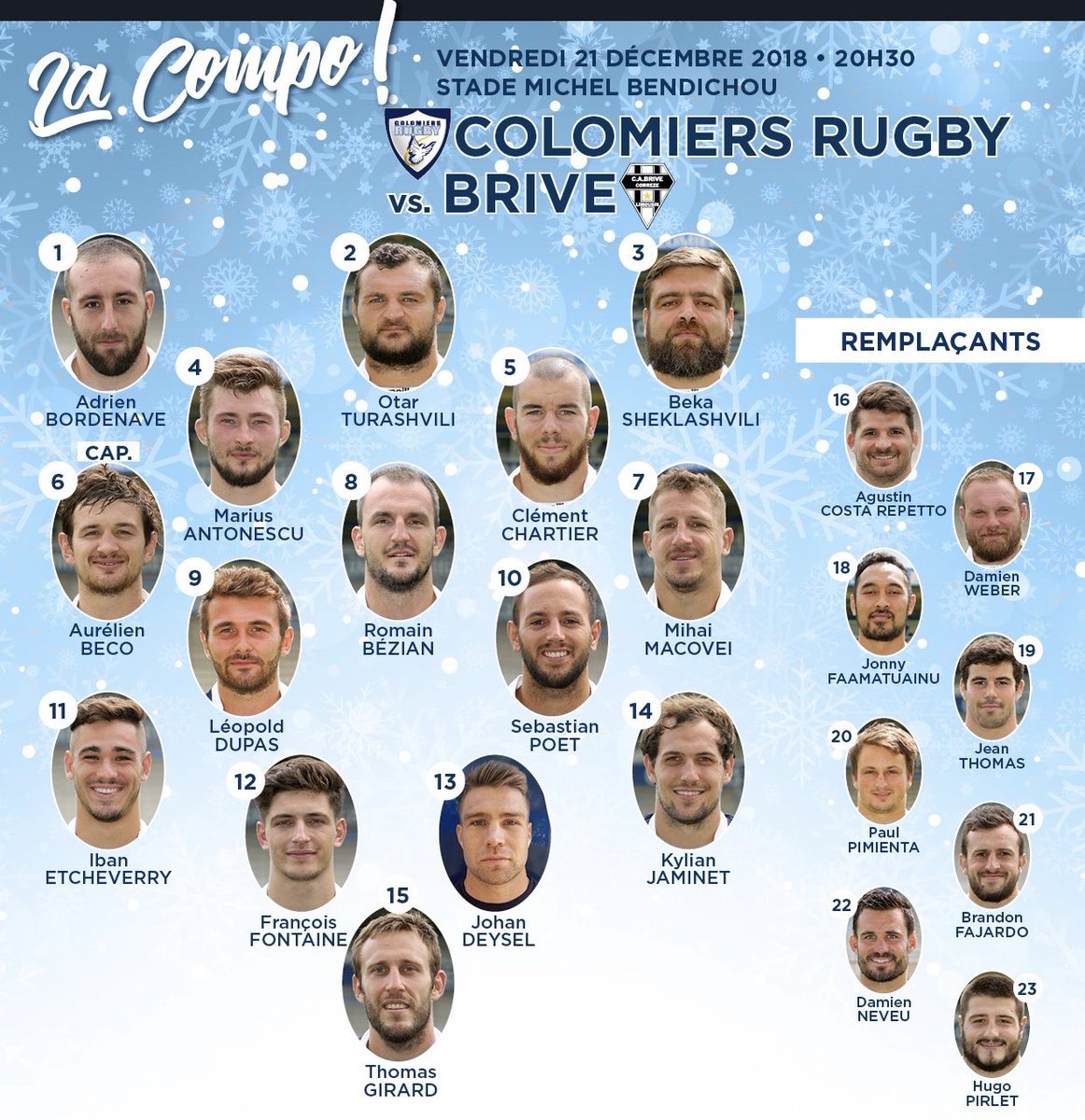 Voici le XV de départ de Colomiers pour la réception de Brive :