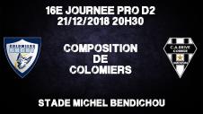 Pour ce match, Colomiers retrouvait quelques forces vives, notamment dans son paquet d'avants. Brive fait quelques changements par rapport à Bourg mais garde la même ossature.