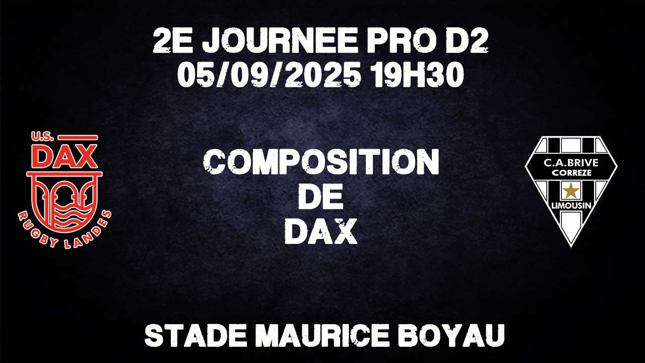 Pour cette réception, Dax est privé de Naseara (genou), Sovau (reprise Espoirs), Oltmann (cheville), Singer (pouce), Guillaume, Duprat (genou), Manukula et JB.Barrère (ischios).
