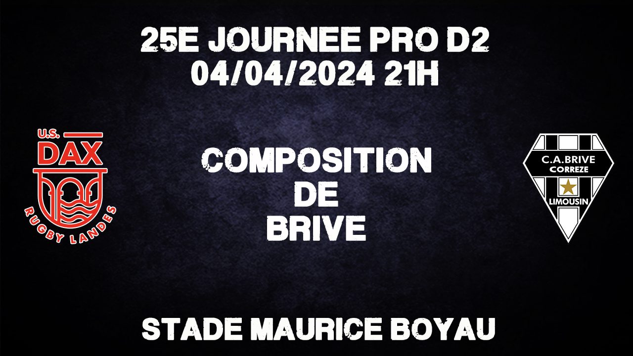 Cela aurait pu faire l'objet d'un mini-stage du côté d'Hossegor mais cela sera plutôt un second voyage dans les Landes en une semaine. Après Mont de Marsan, direction Dax pour Brive. Après son match nul montois, le CAB ne devra pas baisser la garde face à ces surprenants dacquois qui joue les trouble-fêtes en cette fin de saison.