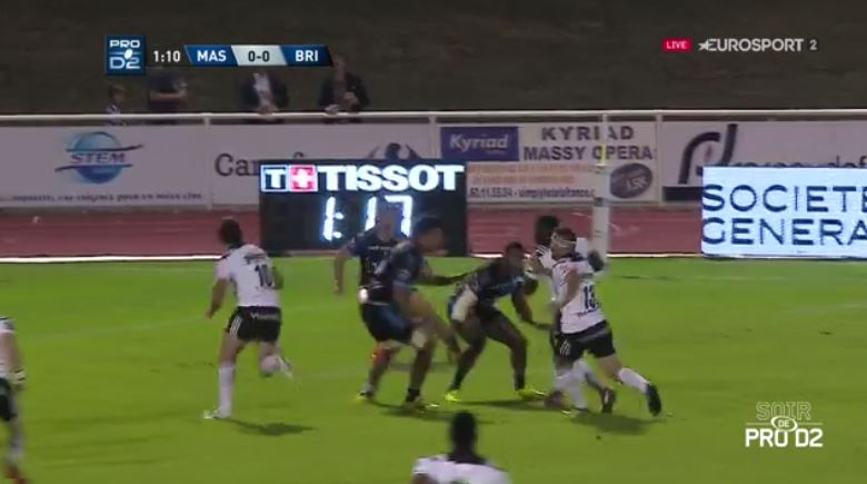 Massy : 3 essais de Bordes (17'), Graaff (19') et Bituniyata (43') ; 3 transformations et 3 pénalités (49', 55', 68') de Graaff ; 2 cartons jaunes pour Chauveau (38') et Abraham (79'), 1 carton rouge pour Halaifonua (63')