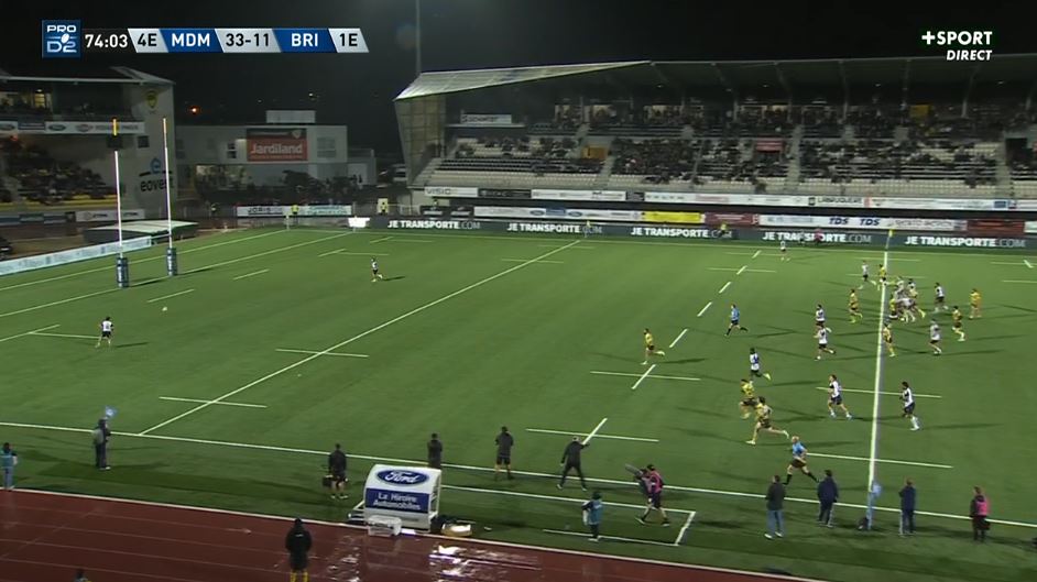 Un match qui termine mal. On le disait juste au dessus, le ciel bleu briviste a duré environ 15 minutes. Le temps pour les montois de se mettre en route et de prendre le contrôle de la rencontre. Bougé dans les duels en début de match, Mont de Marsan va alors gagner les collisions et n'aura de cesse de mettre en difficulté la défense briviste. Pendant une heure, Brive ne va plus marquer un seul point et n'aura finalement qu'une occasion de marque, avec cette pénalité de 55 mètres de Bosch au retour de la pause. Brive est sans solutions, brouillon offensivement, perméable en défense. Brive a vécu un calvaire dans les Landes et le score aurait pu même être plus lourd que les 33 points et 4 essais encaissés. Et pourtant, c'est l'équipe "type" qui était envoyée et qui avait réussi un bon premier quart d'heure. Mais voilà, derrière, il n'y avait plus qu'une équipe sur le terrain et elle était en jaune et noir.