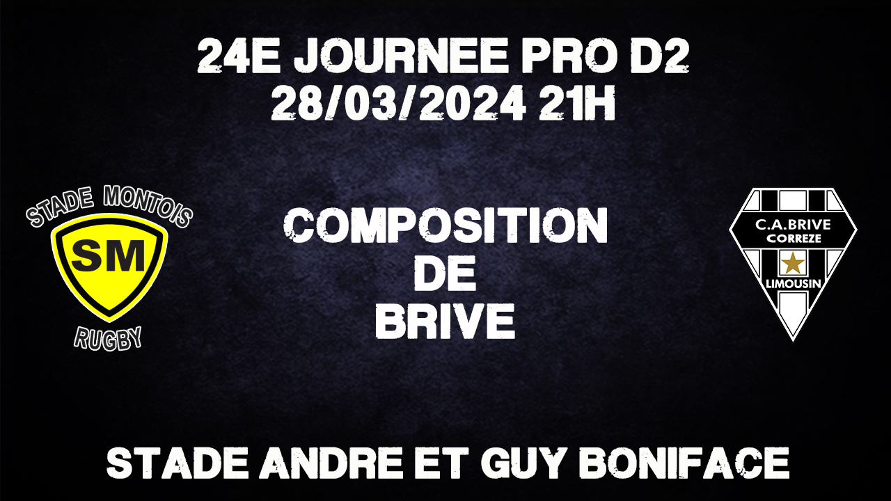 Pour ce déplacement, Brive surprend en laissant plusieurs titulaires au repos et en (re)lançant d'autres joueurs. Blessé quelques jours après l'arrivée de Pierre-Henry Broncan, Daniel Brennan rejoue et va débuter le match. Issam Hamel et Vakhtang Abdaladze complètent la première ligne. Renger Van Eerten débute en 2e ligne. Après les postes d'ailier et d'arrière, Mathis Ferté va débuter au centre, à côté de Stuart Olding. Benjamin Lefranc est placé à l'aile. Pour sa première en Pro D2, Nicolas Krone débute à l'arrière.