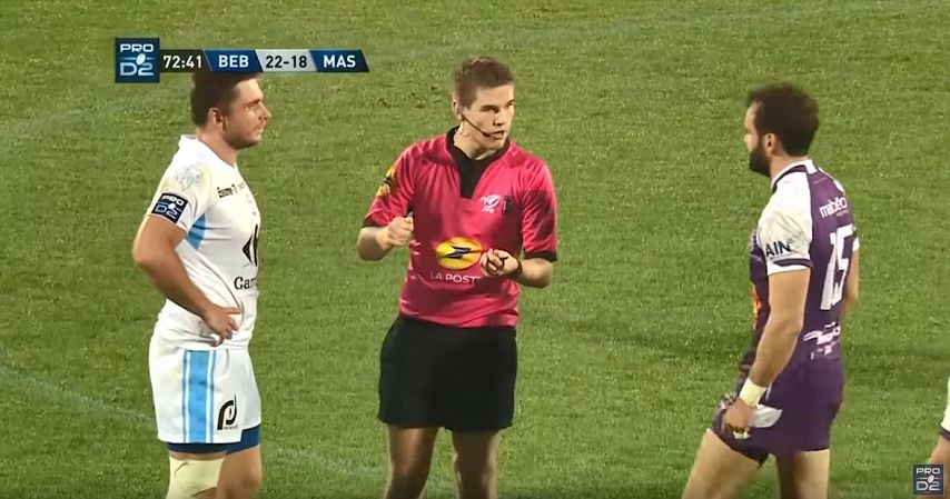 La FFR a désigné comme arbitre central pour cette rencontre de la 13e journée de Pro D2 Monsieur Benoit Rousselet du comité Alpes. Il sera assisté à la touche par Hervé Lasausa (Béarn) et Christophe Bats (Côte d'Argent). Les 4e et 5e arbitres sont Marc Dos Santos (Côte d'Argent) et Gérard Etchecopar (Côte Basque Landes).