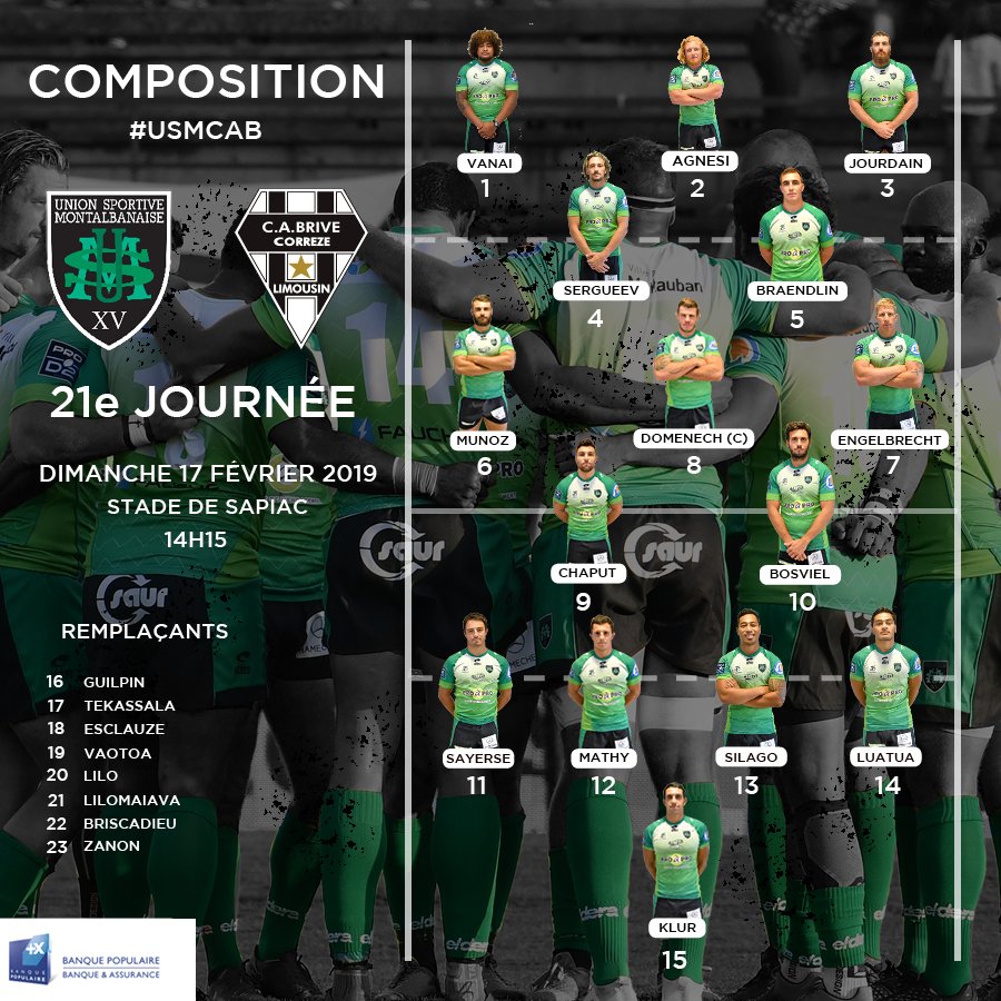 Voici le XV de départ de Montauban pour la réception de Brive :