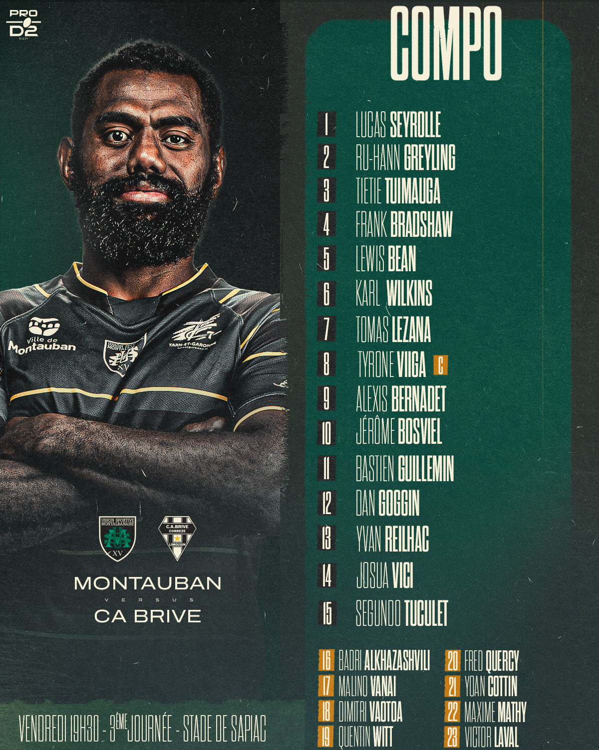 Voici le XV de départ de Montauban pour la réception de Brive :