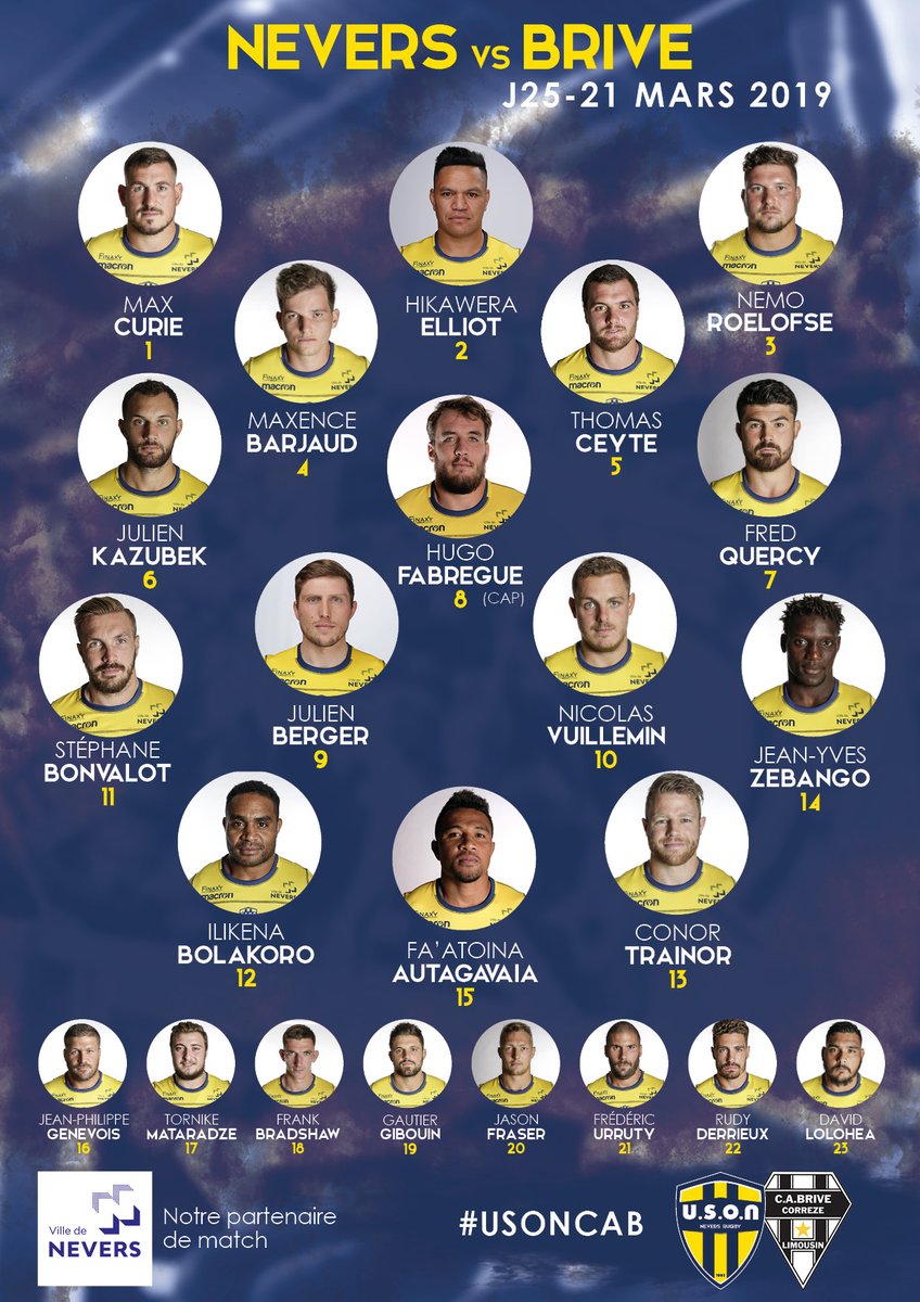 Voici le XV de départ de Nevers pour la réception de Brive :