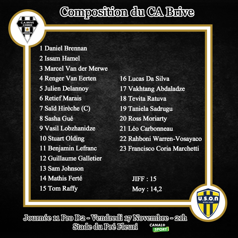 — CA Brive Rugby (@CABCLRUGBY) November 17, 2023