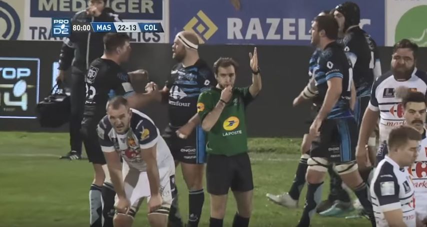 La FFR a désigné comme arbitre central pour cette rencontre de la 25e journée de Pro D2 Monsieur Pierre-Baptiste Nuchy du comité Côte d'Argent. Il sera assisté à la touche par Laurent Millotte (Ile de France) et Ghyslain Elias (Ile de France). Les 4e et 5e arbitres sont Joffrey Gauzins (Ile de France) et Christophe Bouillet (Bourgogne).