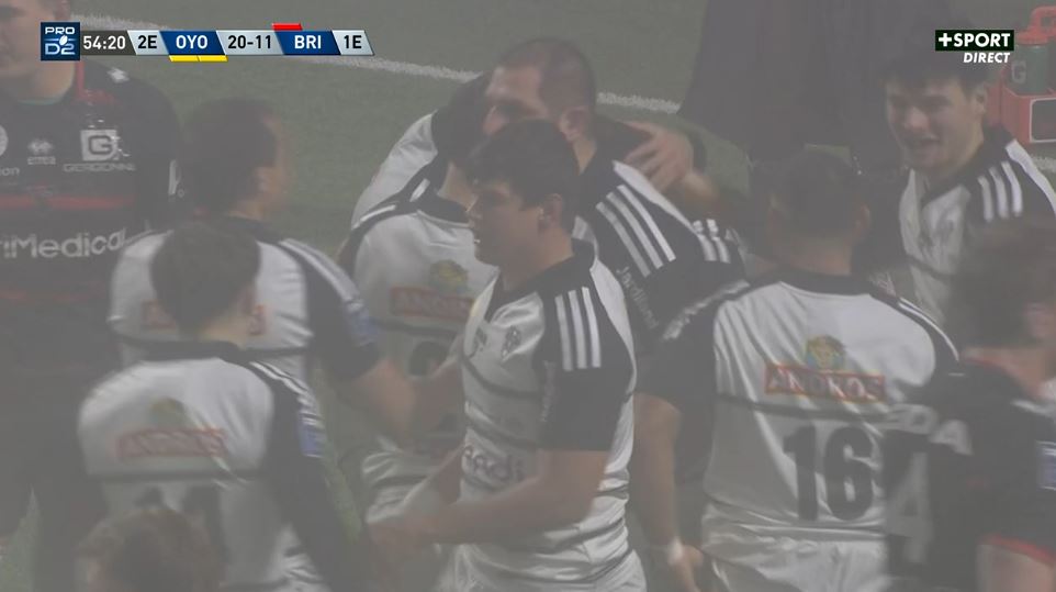 La réaction en 2e période. Après la pause, Brive aurait pu plonger et sombrer dans le brouillard. 20 à 6 au tableau d'affichage et avec un carton rouge depuis la 20e minute, Brive aurait pu craquer et en prendre une belle du côté d'Oyonnax. Mais dans le brouillard, le CAB va prendre le taureau par les cornes et montrer un état d'esprit bien différent de celui de la première période. Les brivistes ont apporté plusieurs changements à la pause et confisquent le ballon. On s'appuie sur les avants et sur le secteur de la mêlée. Oyonnax enchaine les fautes et ne fait que défendre à 10 mètres de son en-but. Les fautes se multiplient et les cartons tombent. En quelques minutes, c'est même Brive qui évolue en supériorité numérique. A force d'insister, Brive est récompensé avec l'essai de Paul Pimienta. Dans la foulée, Brive se montre à nouveau pressant et inscrit une pénalité face aux poteaux. A l'heure de jeu, il n'y a plus que quatre points d'écart. On se dit "pourquoi pas" mais le soufflé va retomber et l'espoir n'aura duré que 20 minutes avant de revoir Oyonnax reprendre le contrôle de la partie.