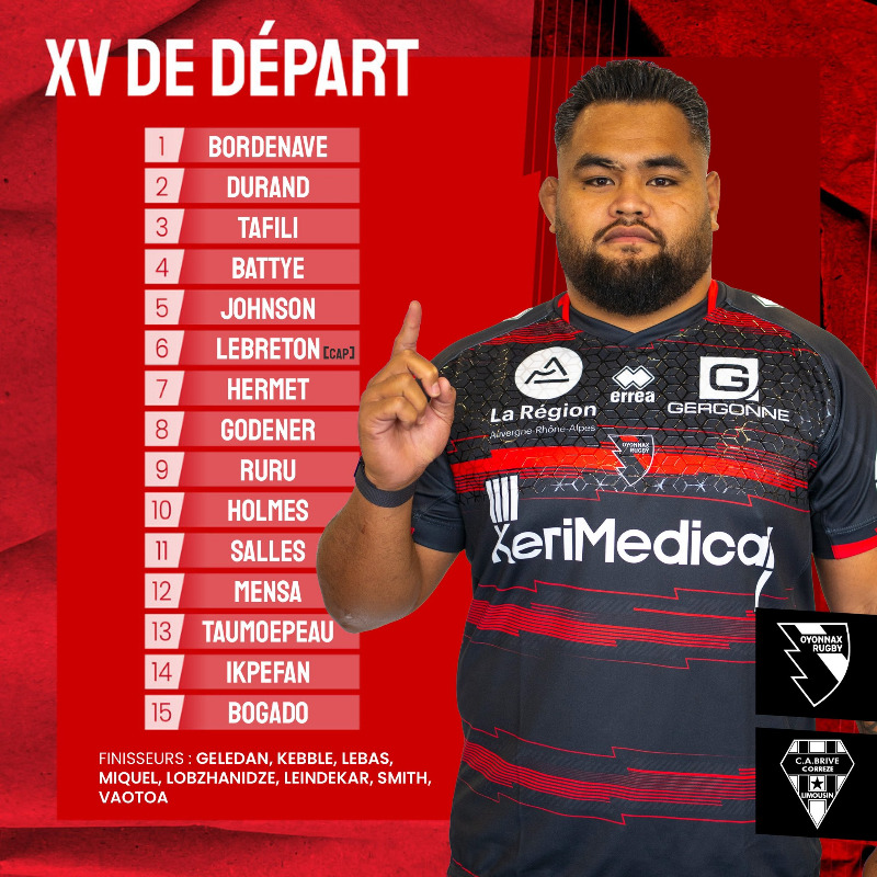 Voici le XV de départ d'Oyonnax pour la réception de Brive :