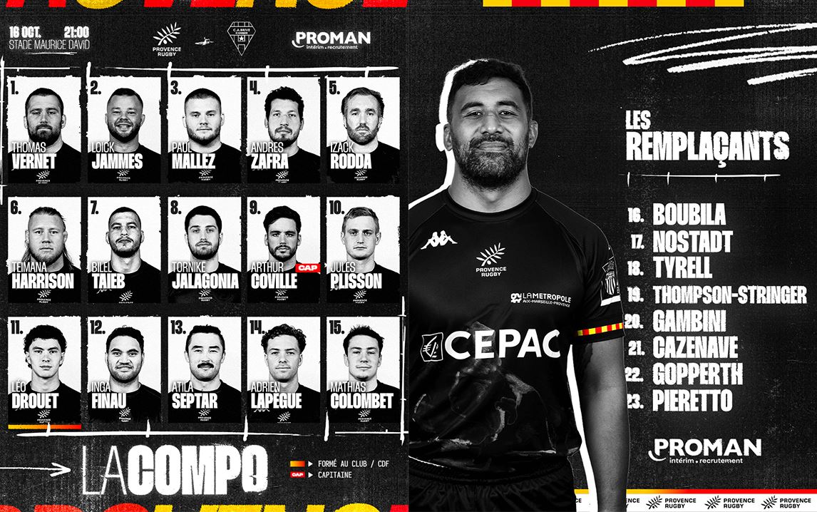 Pour cette réception, Provence ne peut compter sur Samaran (genou), Wegrzyn, Francis, Sauveterre (tendon d'Achille), Hannoyer (genou), Belhadj, Hanigan (commotion), Piazzoli (suspension), Suta, Navizet et North (tendon d'Achille).