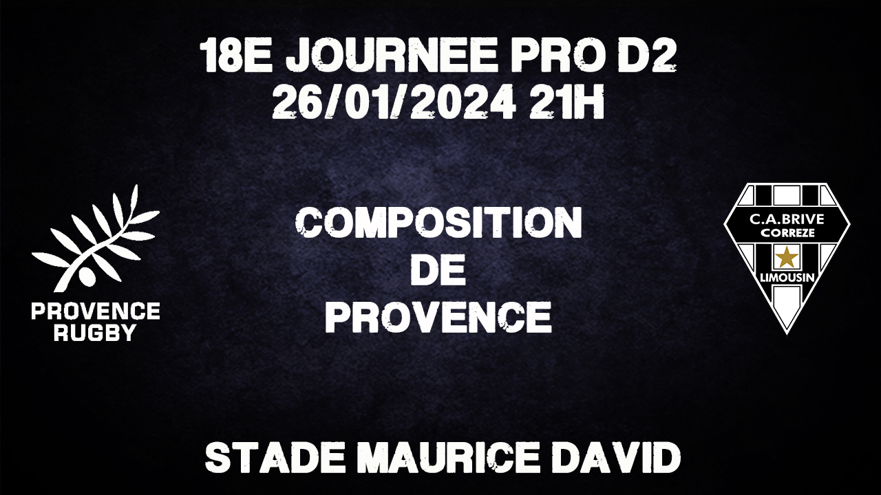 Depuis plusieurs saisons, Provence se veut un club ambitieux mais pour le moment, cela ne se concrétise pas. Mais cette saison, les planètes semblent s'aligner. Les aixois jouent les premiers rôles et entendent bien aller chercher le Top 14. Après Béziers, nouveau choc avec la venue de Brive, 4e au classement.