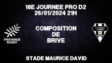 Est ce que ce sera la saison où Provence va être à la hauteur de ses ambitions ? En tout cas, alors qu'on a passé le cap de la mi-saison, Provence est plus que bien installé dans le top 6, pressant même Vannes pour la place de leader de la Pro D2. A Aix, on commence à rêver du Top 14 et les premières recrues annoncées (North, Plisson) montrent bien qu'on vise cette division pour la saison prochaine. Mais il va falloir déjà terminer cette saison et il y a plusieurs prétendants à l'accession au Top 14. A commencer par Brive qui se déplace ce vendredi à Maurice David. Fort de 4 victoires de rang, c'est une équipe en confiance qui arrive. Les hommes de Mauricio Reggiardo viennent de l'emporter à Béziers et savent ce qu'ils doivent faire pour distancer un concurrent direct.