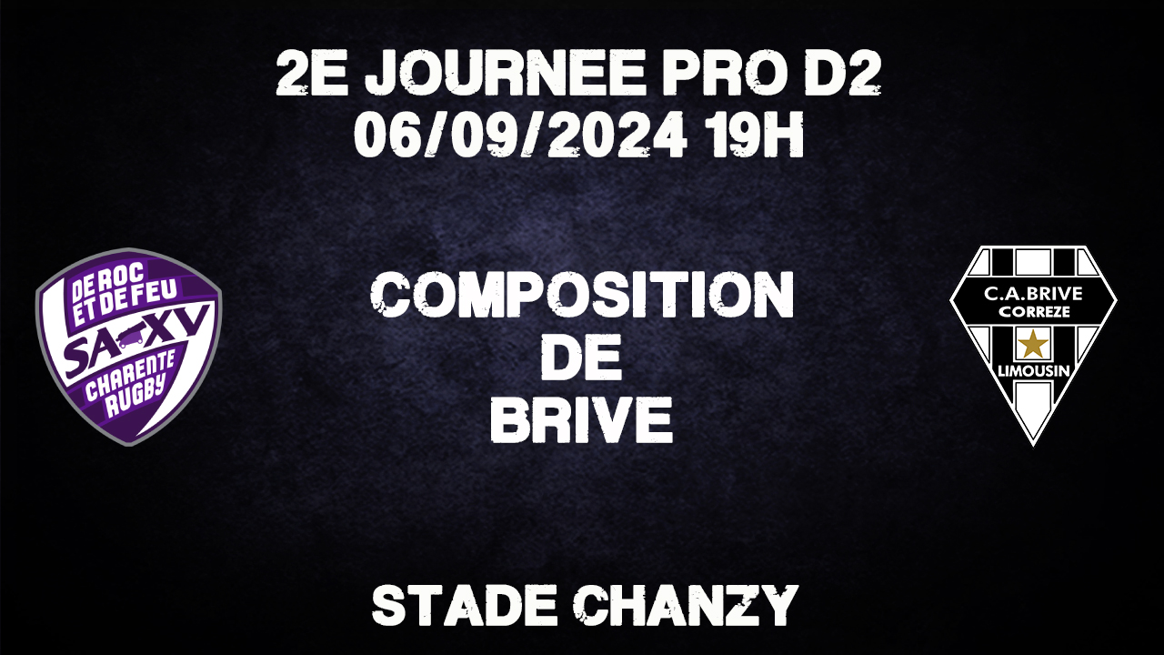 Voici le XV de départ du CA Brive pour le déplacement à Soyaux-Angoulême :