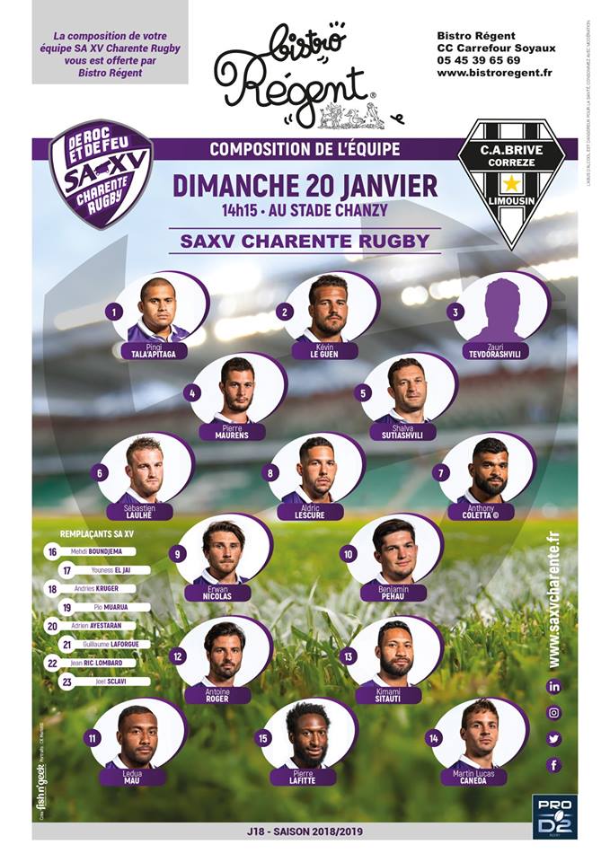 Voici le XV de départ d'Angoulême pour la réception de Brive :