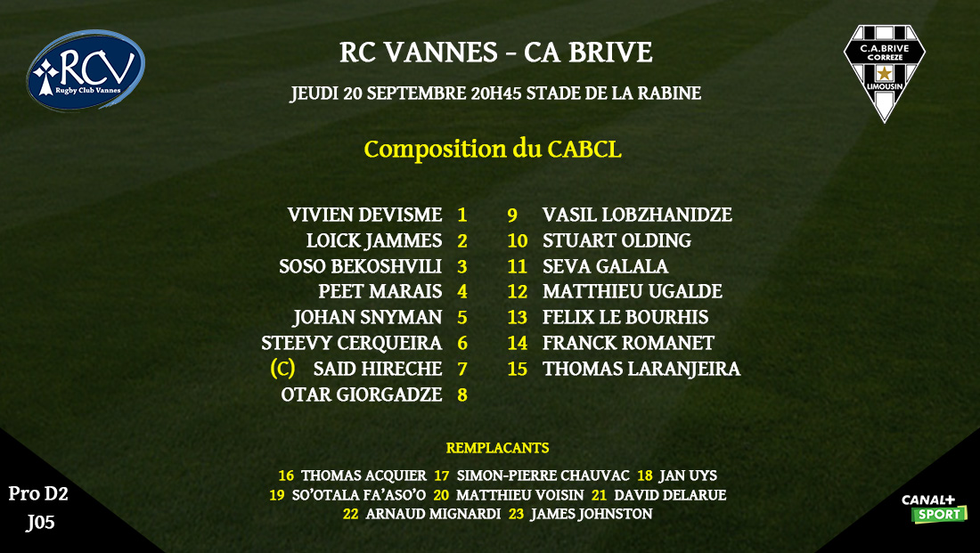 Voici le XV de départ du CA Brive pour le déplacement à Vannes :