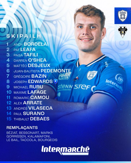 Voici le XV de départ de Vannes pour la réception de Brive :