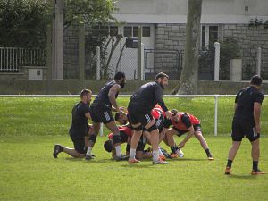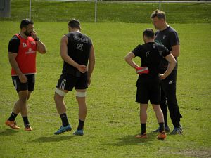 C'est sous un soleil printanier que les joueurs du CAB retrouvent les terrains d'entrainement après quelques jours de coupure. Il faut bien préparer la fin de la saison et notamment le prochain déplacement à Oyonnax, jeudi prochain. Pendant que ses coéquipiers travaillent, Demba Bamba bénéficie d'une semaine de vacances bien méritée. Tandis que Peet Marais, So'otala Fa'aso'o et Ken Bikadua ont enchainé les courses, Joris Jurand prépare son retour au jeu. De retour de blessure, Said Hirèche a ressenti une gêne à l'aine mercredi et est ménagé, tout comme Thomas Acquier. Pour le reste, le groupe est au complet. Après une reprise sur du rugby touché, les choses sérieuses s'enchainent avec une opposition collective. Touché au mollet la veille, Enzo Hervé a effectué l'ensemble de la séance, certes bandé mais sans gênes. Tout se passe bien jusqu'à une séquence moins bonne qui provoque la colère de Jeremy Davidson. Preuve en est qu'il n'y aura pas de relâchement autorisé d'ici la fin de la saison. En fin de séance, plusieurs joueurs ont fait du travail supplémentaire à base de passes, renvois et buts. Une bonne reprise et un bon entrainement (pas comme celui auquel nous avons assisté avant Aurillac).