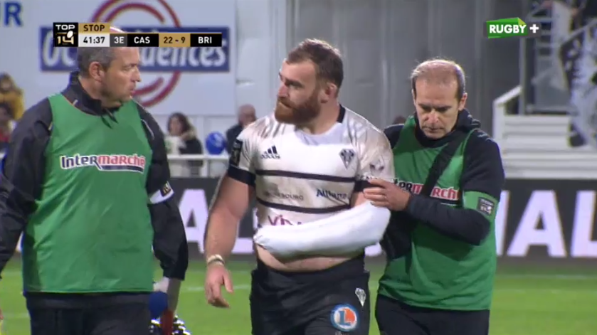 A Castres, en début de seconde période, Bekoshvili se blesse sur un contact qui semble anodin. Il doit quitter le terrain avec le bras gauche en écharpe (ce qui n'est jamais bon signe).