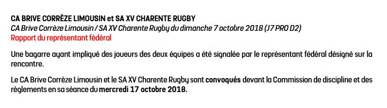 Si comptablement, Brive a fait une bonne opération en battant Angoulême et se retrouve ainsi deuxième du classement, il a aussi perdu deux joueurs sur carton rouge. Les convocations sont tombées.