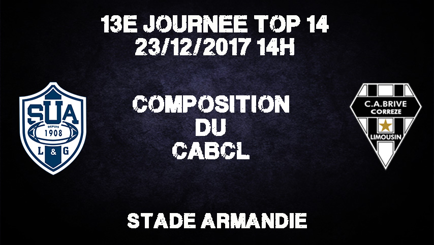 L'infirmerie du CA Brive bouge peu actuellement. Damien Lagrange (épaule), Nicolas Bézy (épaule), Vasil Lobzhanidze (cheville), Soso Bekoshvili (cuisse), Sisa Koyamaibole (côtes) et Na'ama Leleimalefaga (épaule) sont blessés. Johan Snyman est malade. Thomas Acquier est suspendu.