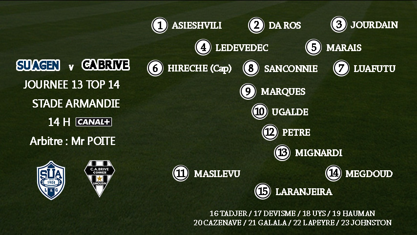 Voici le XV de départ du CA Brive pour le déplacement à Agen :