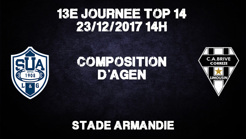 Voici le XV de départ d'Agen pour la réception de Brive :