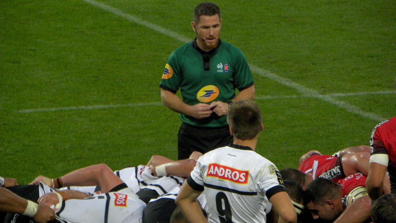 La LNR a désigné comme arbitre central pour cette rencontre de la 11e journée de Top 14 Monsieur Laurent Cardona du comité Poitou Charentes. Il sera assisté à la touche par Pierre-Baptiste Nuchy (Côte d'Argent) et Mourad Gharbi Tarchouna (Côte d'Azur). Les 4e et 5e arbitres sont Ludovic Sacarot (Périgord–Agenais) et Albéric Lascou (Périgord–Agenais). L'arbitre vidéo est Pierre Brousset (Midi Pyrénées).