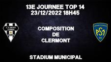 Pour Clermont : 1 Beria - 2 Beheregaray - 3 Kubriashvili - 4 T.Lanen - 5 Lavanini - 6 Tixeront - 7 Fischer - 8 Lee - 9 Bezy (Cap) - 10 Plisson - 11 Raka - 12 Simone - 13 Tiberghien - 14 Penaud - 15 Newsome