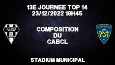 Voici la composition des deux équipes pour le match CA Brive - Clermont (coup d'envoi à 18h45, arbitre : Mr Thomas Charabas)