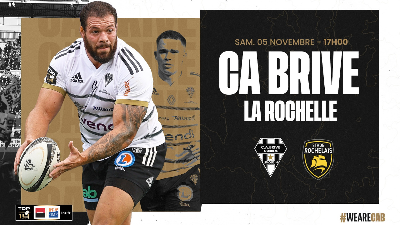 Voici la composition des deux équipes pour le match CA Brive - La Rochelle (coup d'envoi à 17h, arbitre : Mr Vivien Praderie)