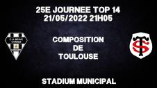 Voici la composition des deux équipes pour le match CA Brive - Toulouse (coup d'envoi à 21h05, arbitre : Mr Mathieu Raynal)