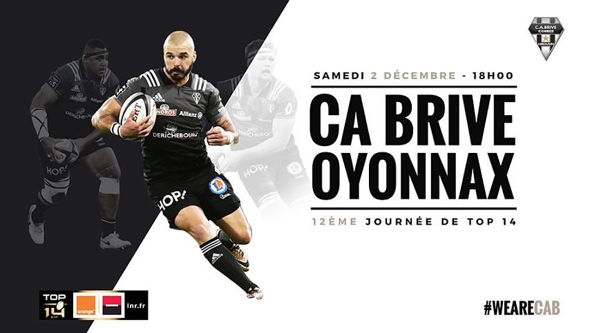 Voici la composition des deux équipes pour le match CA Brive - Oyonnax (coup d'envoi à 18h, arbitre : Mr Mathieu Raynal)