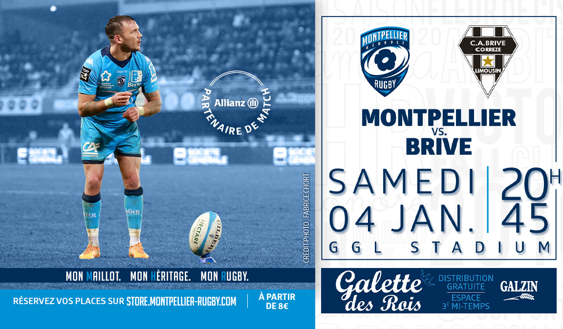 Voici la composition des deux équipes pour le match Montpellier - CA Brive (coup d'envoi à 20h45, arbitre : Mr Vincent Blasco-Baque)