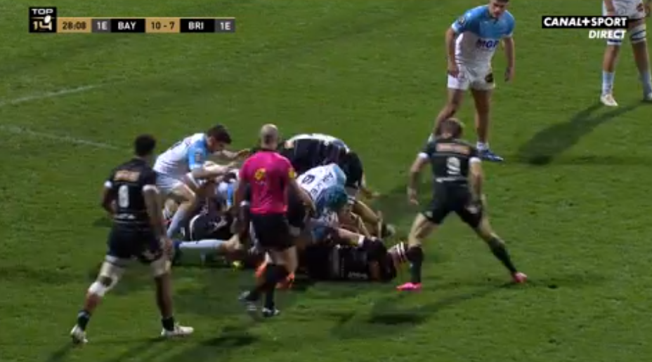 Le jeu au sol. Le secteur vraiment révélateur de l'intensité mise dans une rencontre est le jeu au sol. Si Brive a réussi à obtenir plusieurs pénalités tout au long de la rencontre, c'est l'Aviron qui a dominé ce secteur, tant offensivement que défensivement. Dès les premières minutes, Bayonne a gratté plusieurs ballons sur des offensives brivistes. Les bayonnais ont su se montrer intelligents et opportunistes pour déjouer l'attaque briviste. En attaque, Bayonne a joué rapidement, évitant la puissance au sol briviste de se mettre en place. L'attaque a déstabilisé la défense qui a laissé de nombreux trous autour des rucks dont les avants et la charnière se sont nourris tout au long de la rencontre. Bayonne a également dominé la phase des mauls, comme sur cette dernière touche briviste avec le maul qui est envoyé en touche. Brive devra remettre le bleu de chauffe face à Bordeaux pour vouloir décrocher la victoire.