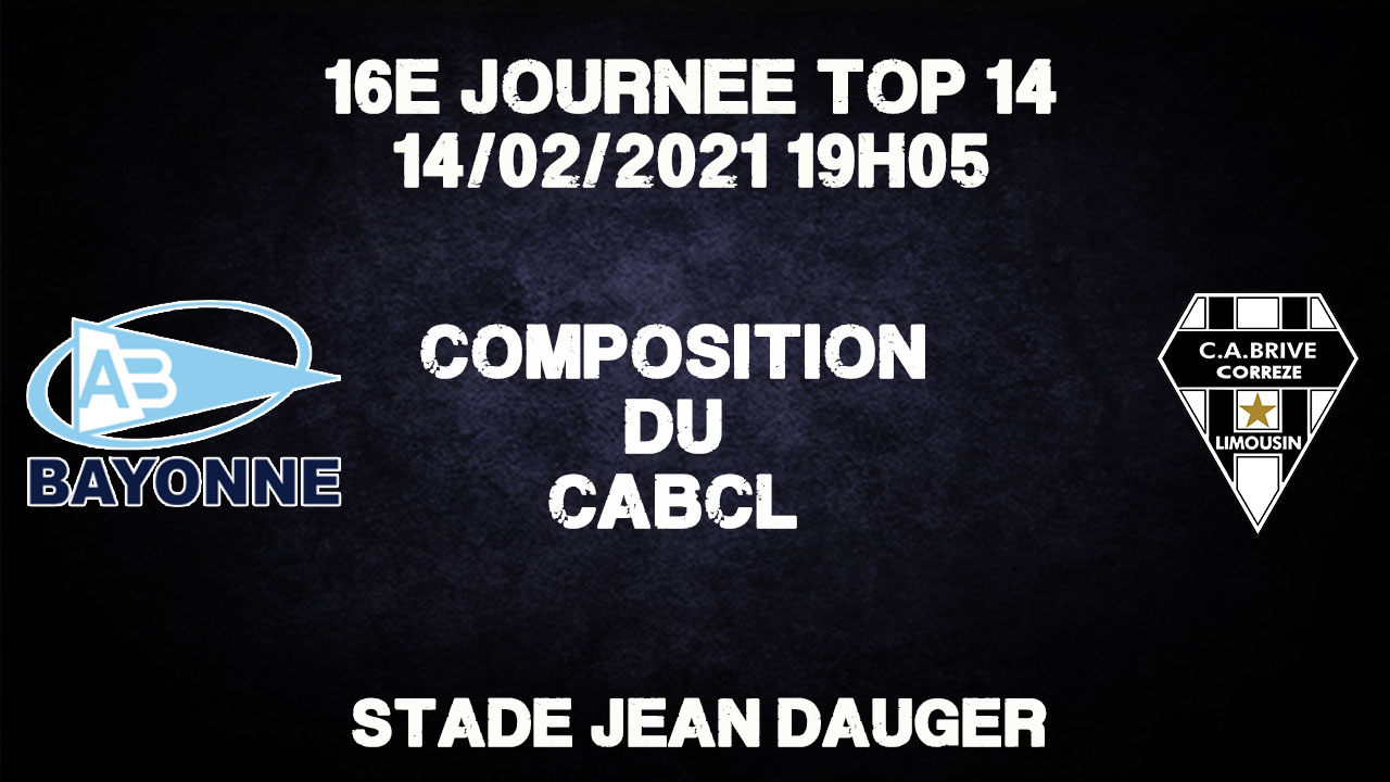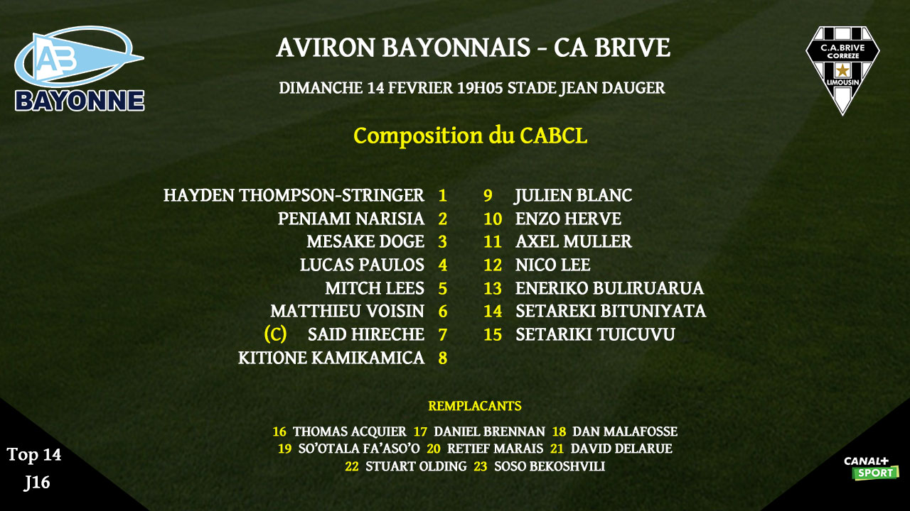 Voici le XV de départ du CA Brive pour le déplacement à Bayonne :