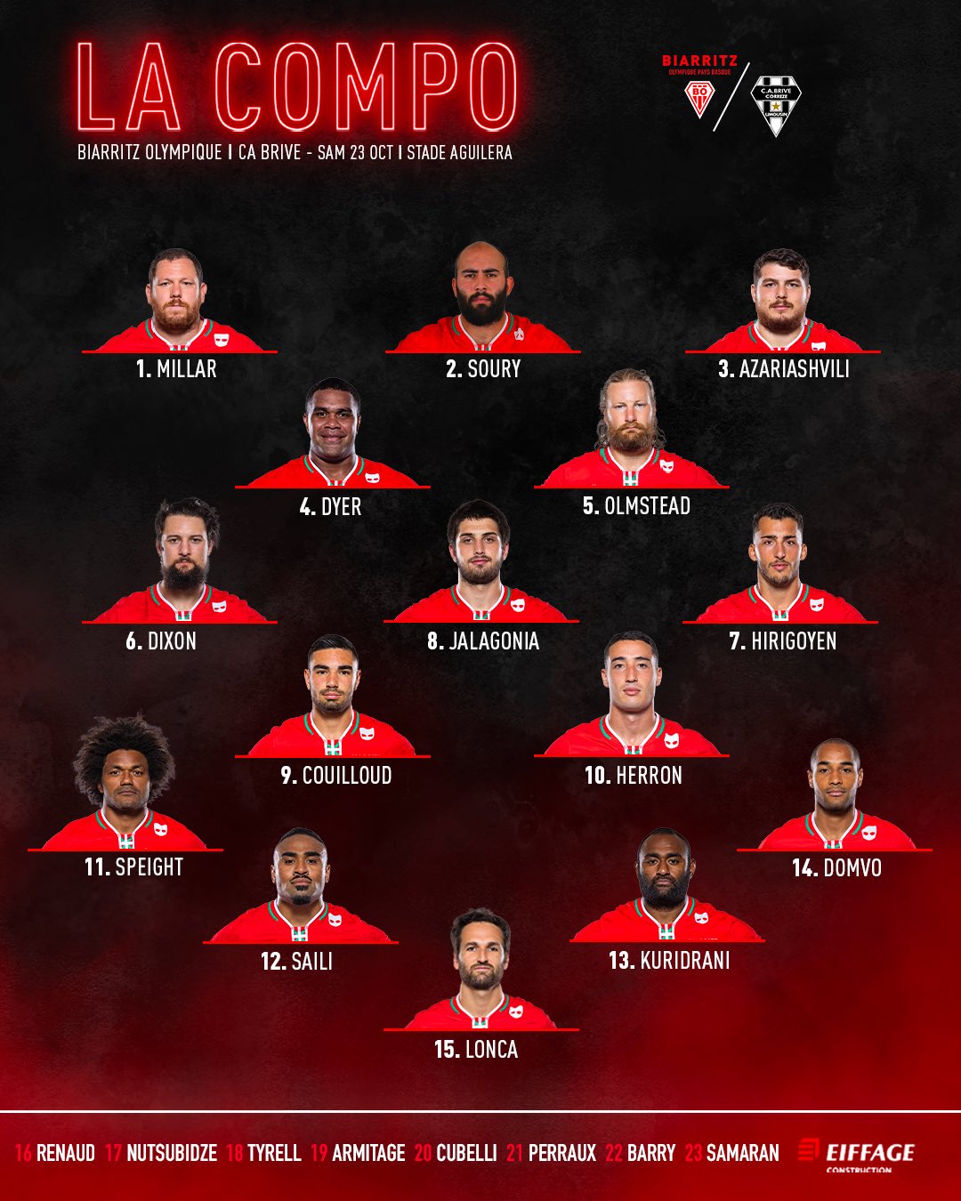 Voici le XV de départ de Biarritz pour la réception de Brive :