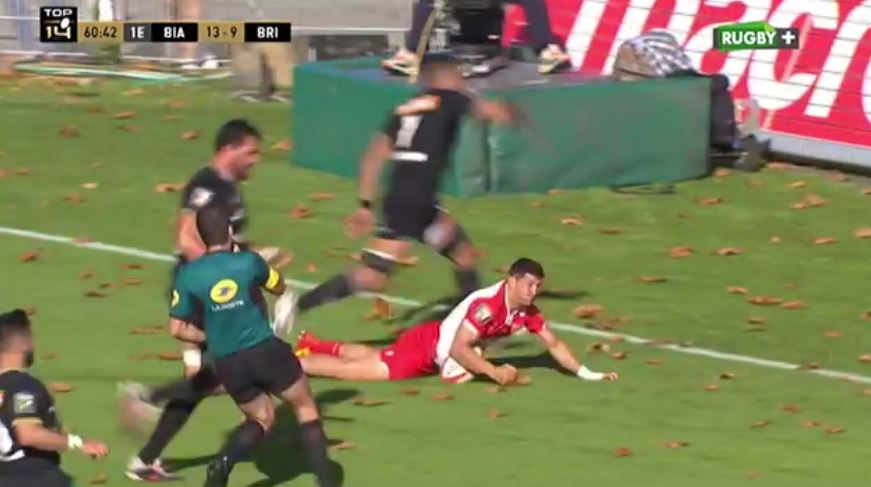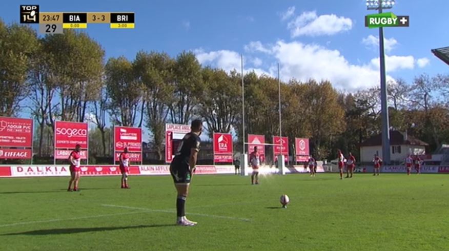 Il y a une grosse bataille au sol entre les deux équipes mais Dyer parvient à déjouer les plans brivistes. Brive a une nouvelle possession proche des 22 biarrots mais le lancer n'est pas assuré. Sur la mêlée, Biarritz déclenche l'accélération petit côté (avec peut être un briviste retenu par le 3e ligne du BO) avec Barnadé Couilloud et Darly Domvo. En quelques passes, on est de retour dans les 22 brivistes. Si ça avance, l'arbitre revient à une position de hors-jeu. Si on pense à une tentative de but, Henry Speight surprend tout le monde et joue à la main. La défense n'est pas attentive et Francis Saili marque en coin (10-6, 33'). Dans ces dernières minutes, Brive tente d'inverser la tendance et de revenir au score mais malgré une belle attaque, un en-avant vient en terminer avec l'action. Biarritz ne prendra pas de risques et sort le ballon en touche pour virer en tête de 4 points en ayant marqué sur une des rares possessions dans les 22 brivistes. Brive a été naïf sur l'action de l'essai mais peine à déstabiliser la défense du BO en dehors du secteur de la conquête.