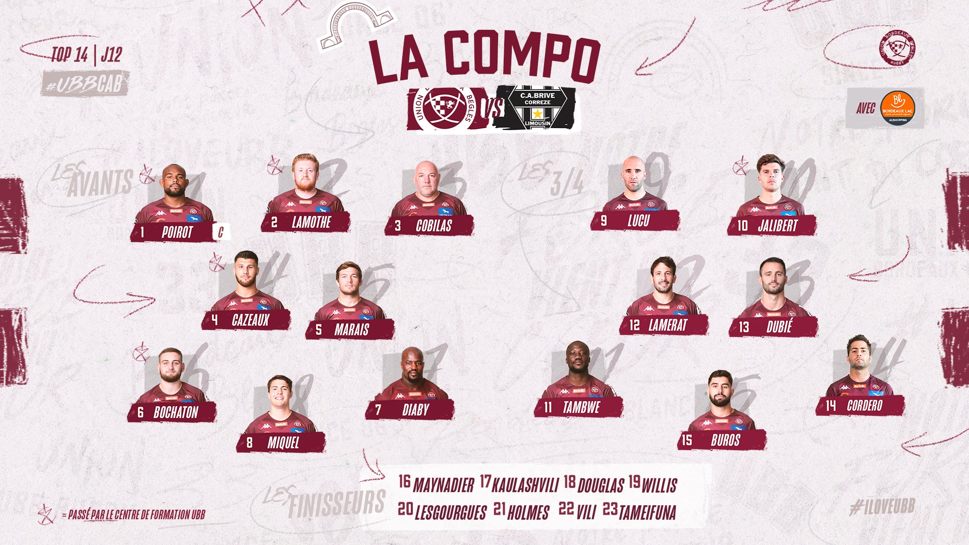 Voici le XV de départ de Bordeaux pour la réception de Brive :