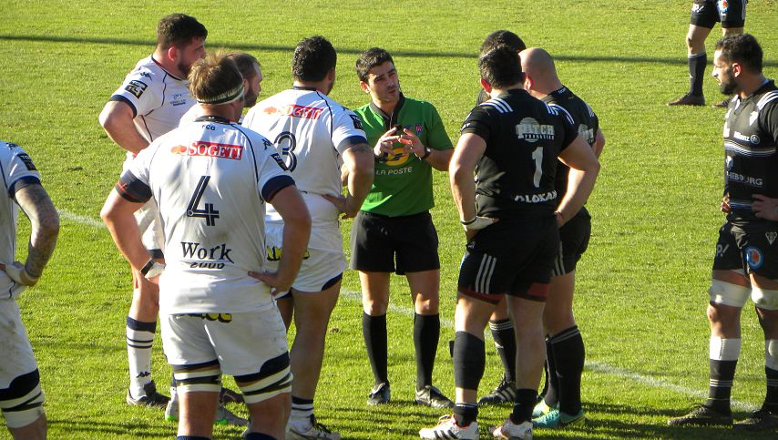 La LNR a désigné comme arbitre central pour cette rencontre de la onzième journée de Top 14 Monsieur Cédric Marchat du comité Midi Pyrénées. Il sera assisté à la touche par Nicolas Datas (Armagnac-Bigorre) et Patrick Péchambert (Périgord Agenais). Les 4e et 5e arbitres sont Guillaume Trieux (Béarn) et Marc Dos Santos (Côte d'Argent). L'arbitre vidéo est Mourad Zitouni (Pays Catalan).