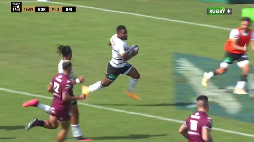 Ce n'est pas le même Bordeaux qui revient sur la pelouse et on ne parle pas seulement de la toute nouvelle première ligne. Si les intentions sont toujours là, la précision, elle, est là. Sur la première offensive bordelaise, le ballon navigue bien et prend de vitesse la défense briviste. Mori dépose Tedo Abzhandadze et sprinte jusqu'à l'essai. L'italien résiste au retour de plusieurs brivistes pour marquer en coin (14-10, 43'). Bordeaux appuie sur l'accélérateur et Ben Lam est tout près de l'essai mais son coup de pied par dessus est un poil trop long (46'). Sur un avantage en cours, l'UBB se rapproche encore un peu plus et Cameron Woki est poussé en touche par Ratuva devant la ligne. Jalibert passe la pénalité (17-10, 49'). Brive est en souffrance en ce début de seconde période et ne voit plus le ballon. Le courage permet de résister mais jusqu'à quand ? Ben Lam réalise un festival avec une course de plus de 50 mètres où l'ailier casse 4 plaquages mais Jalibert, au soutien, ne contrôle pas la passe et commet un en-avant (55'). Le point de rupture du CAB est proche et arrive sur l'action suivante. Sanctionné pour un mauvais plaquage, Kitione Kamikamica écope d'un carton jaune (57').