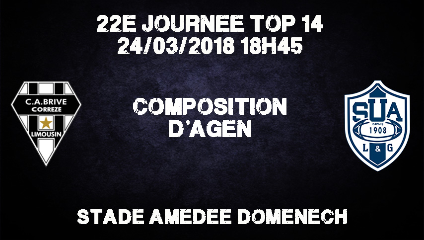 Voici le XV de départ d'Agen pour le déplacement à Brive :